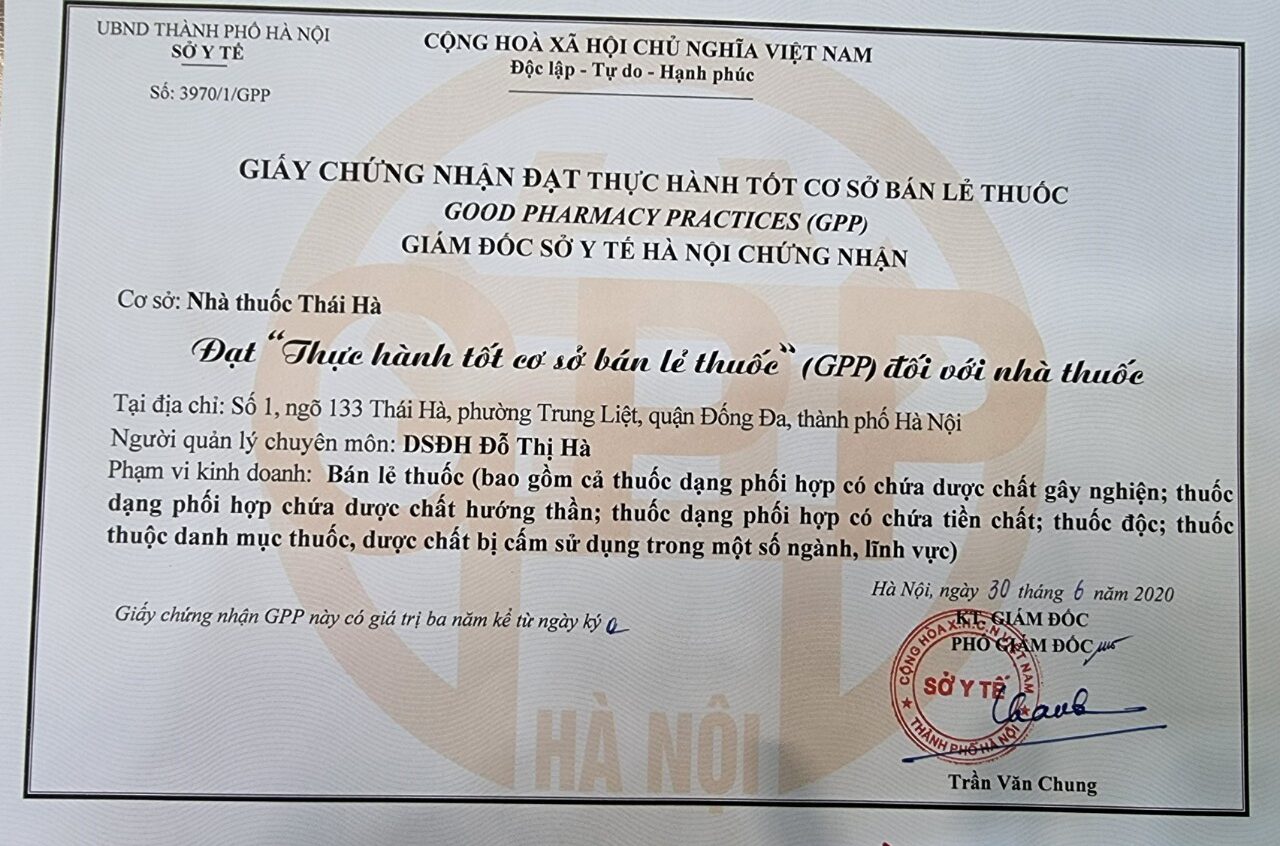 - Chứng chỉ hành nghề Dược của Dược sỹ đứng tên;